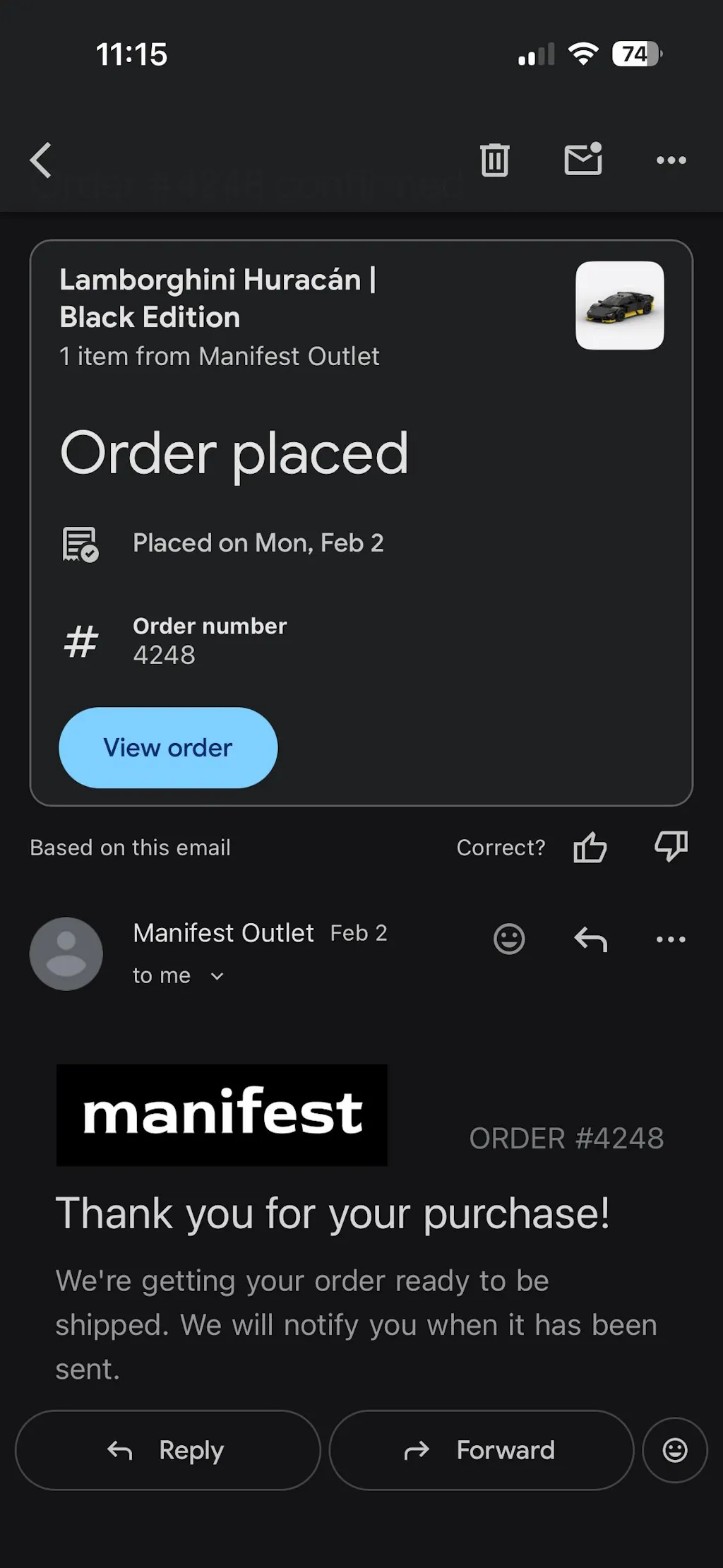 3. Email the images and your order number to info.manifestoutlet@gmail.com